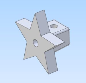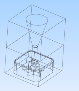 Proper fill was the most critical requirement. To achieve this, we designed a large gate feeding directly into the boss section of the part. This helped ensure that molten brass reached the thin star tips before solidifying.